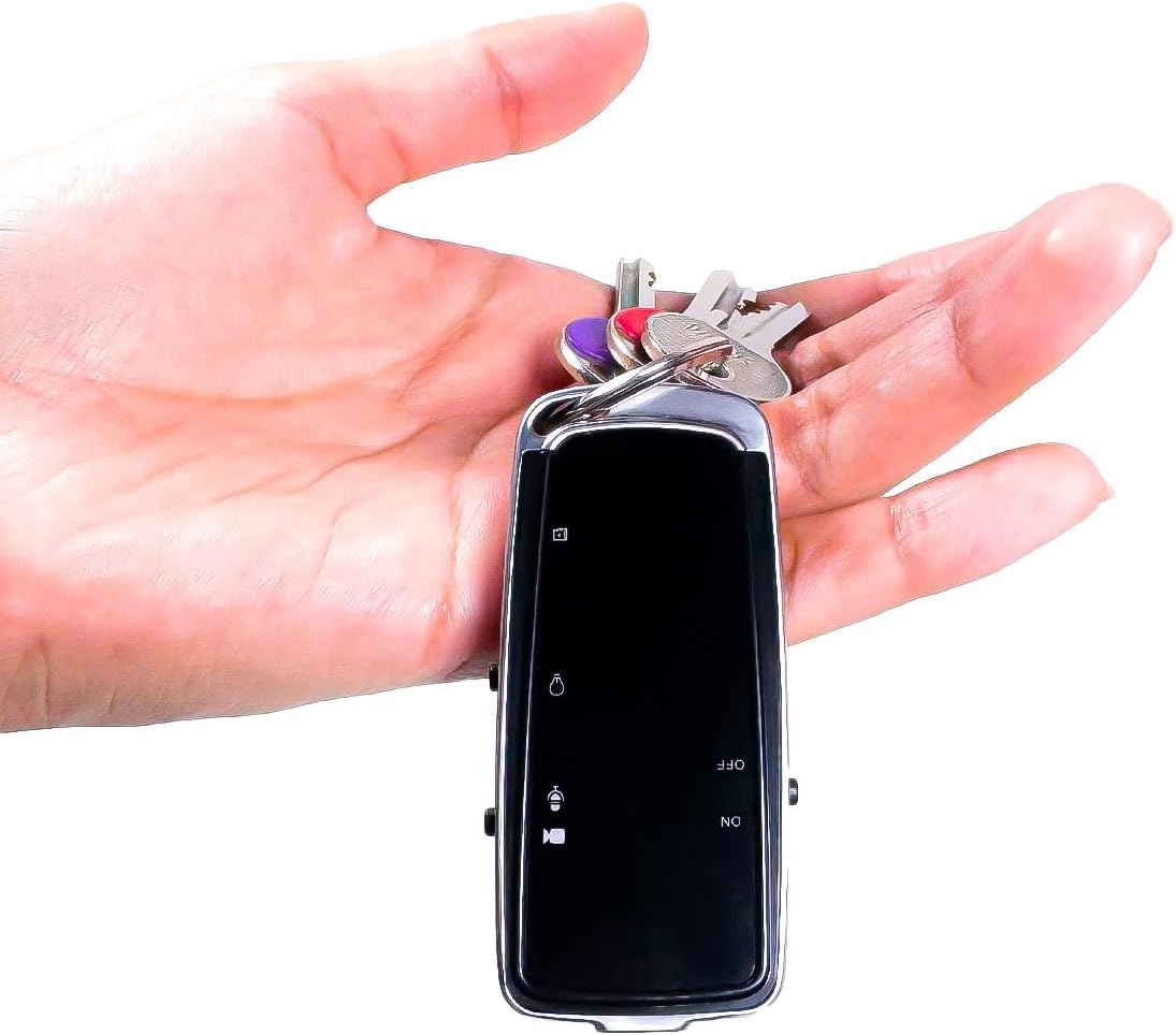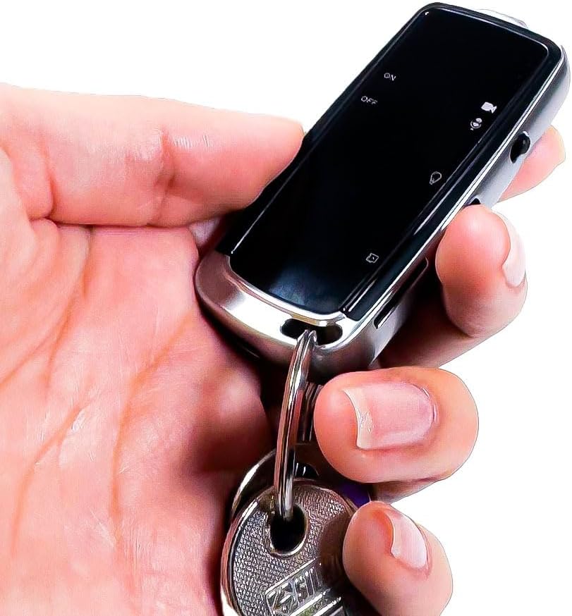 - DESIGN ULTRA-COMPATTO E DISCRETO: Spy cam dalle dimensioni ridotte (60mm x 30mm x 8mm) con forma simile a un telecomando d’auto. Perfetta da appendere al mazzo di chiavi come un comune portachiavi.