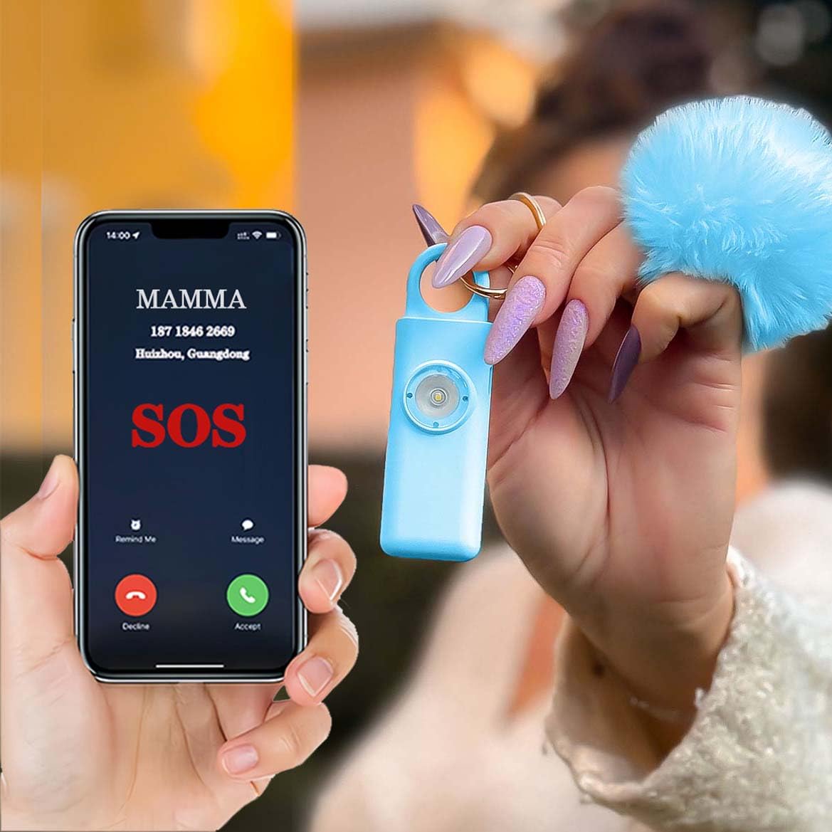 Portachiavi Allarme Antipanico, Dispositivo Antiaggressione SOS Chiamata Automatica, Invio Istantaneo Posizione GPS, Sirena 130dB, Difesa Personale e Autodifesa per Donne, Bambini e Anziani (Azzurro)