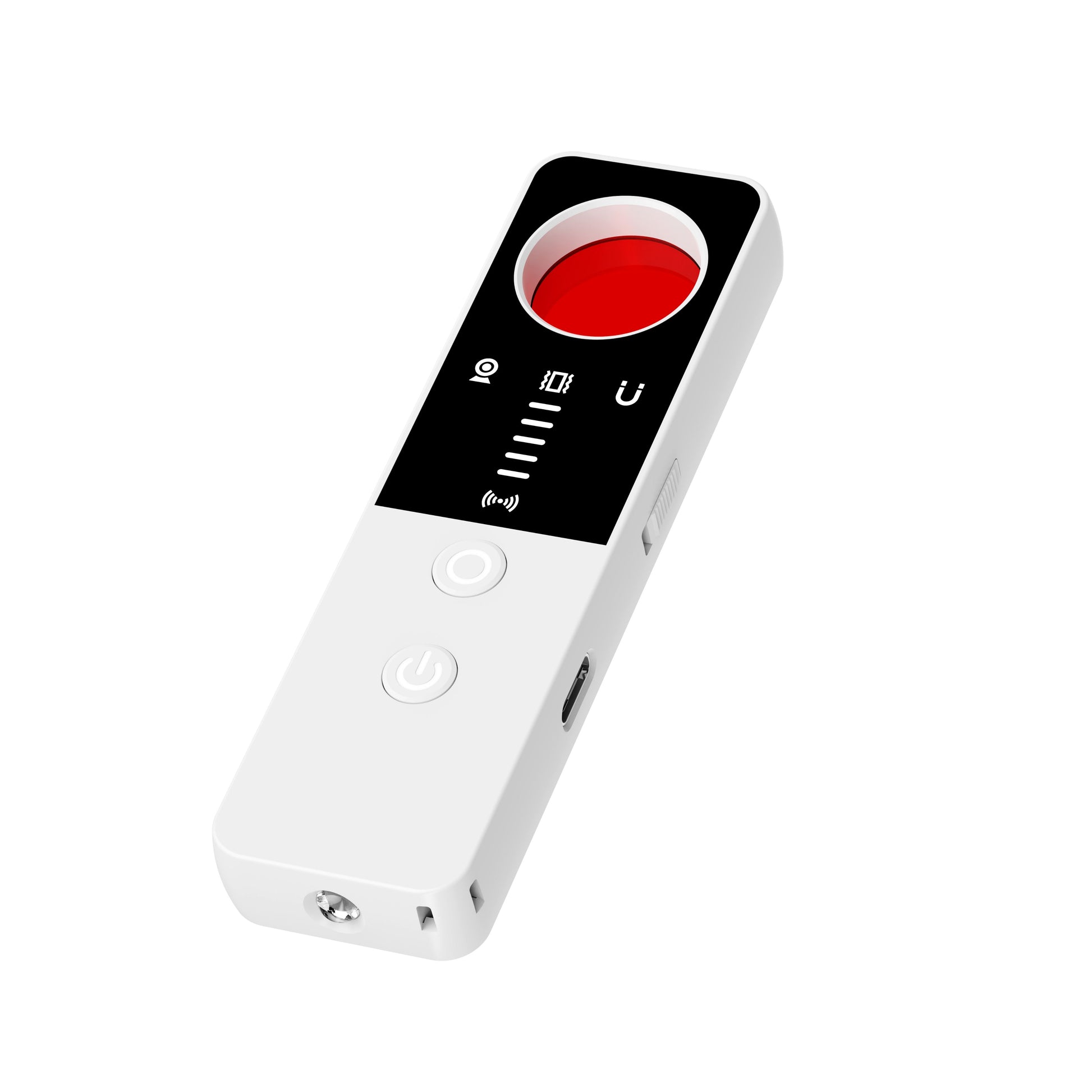 - 3. SCANSIONE A LUCE ROSSA: Utilizzando la scansione dello spettro di luce rossa, è possibile eseguire una semplice ispezione visiva per scoprire telecamere a foro stenopeico nascoste, aiutando gli utenti a rilevare telecamere nascoste ed evitare di essere ripresi di nascosto.
