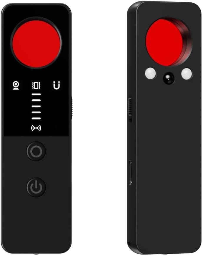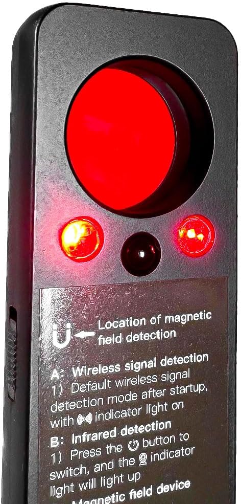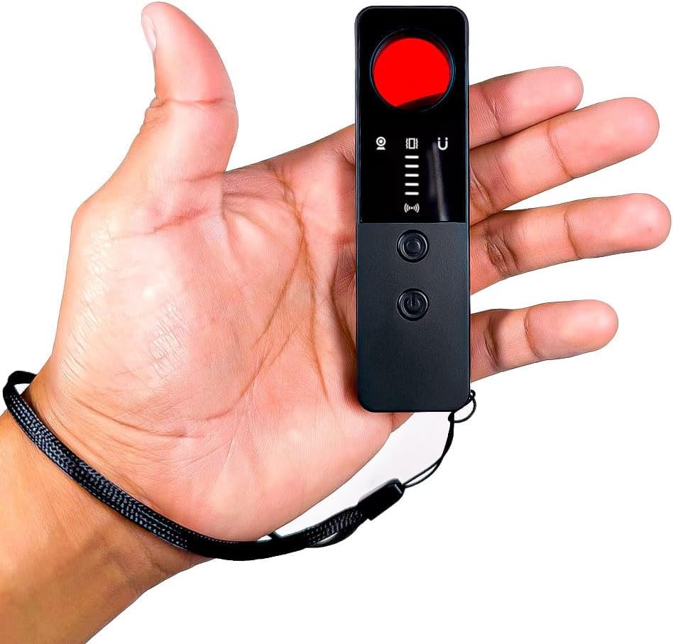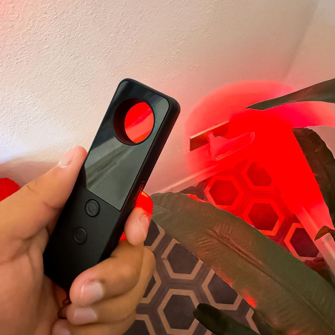- RILEVAMENTO TELECAMERE a luce LED a infrarossi: consente di scoprire telecamere nascoste a foro stenopeico mediante una semplice ispezione visiva con la tecnologia di scansione laser a infrarossi, rileva tutte le telecamere che non trasmettono ma registrano su memoria micro sd o collegate via cavo