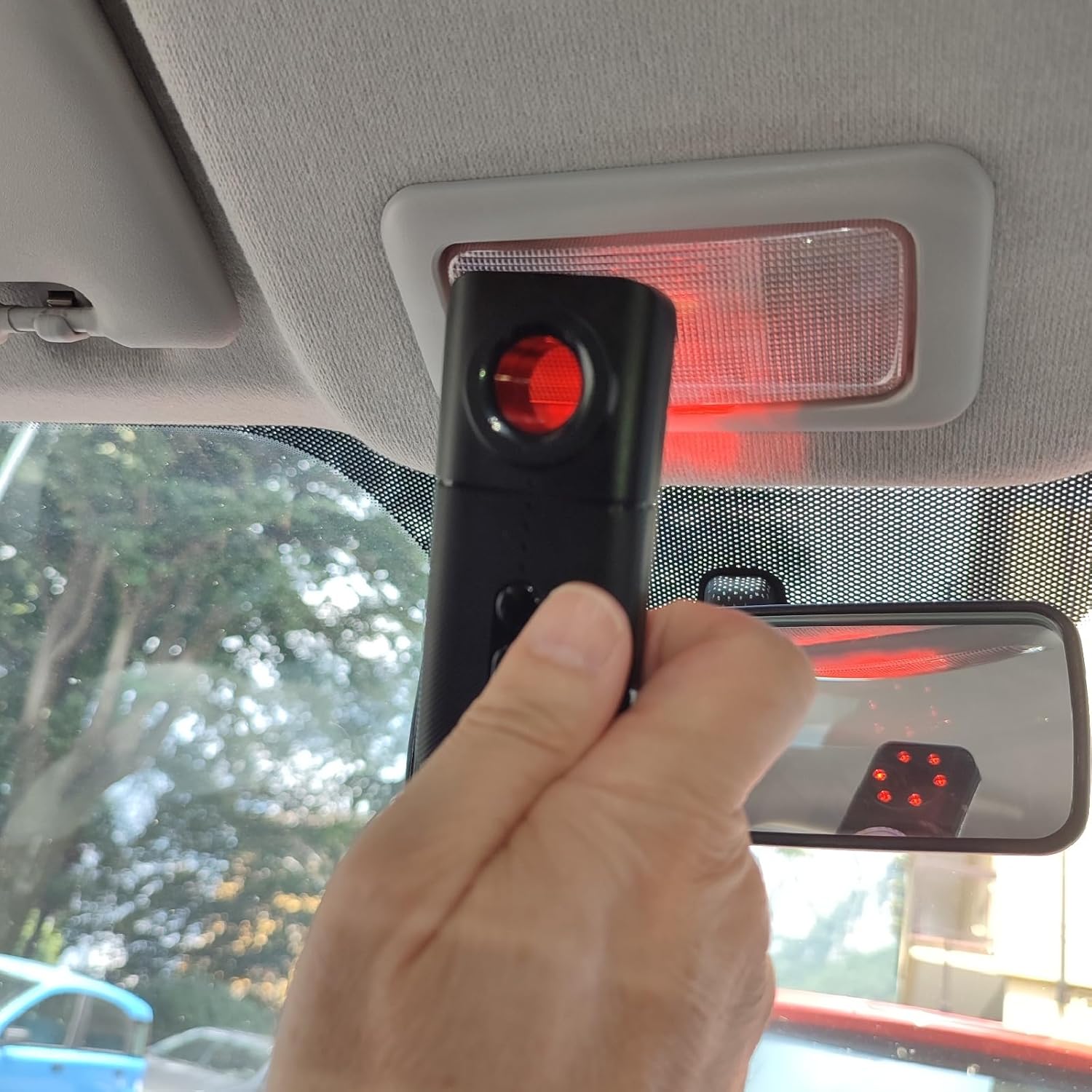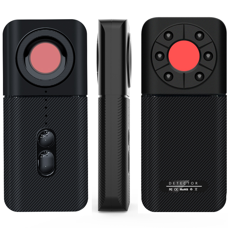 - RILEVAMENTO TELECAMERE a luce LED a infrarossi: consente di scoprire telecamere nascoste a foro stenopeico mediante una semplice ispezione visiva con la tecnologia di scansione laser a infrarossi, rileva tutte le telecamere che non trasmettono ma registrano su memoria micro sd o collegate via cavo