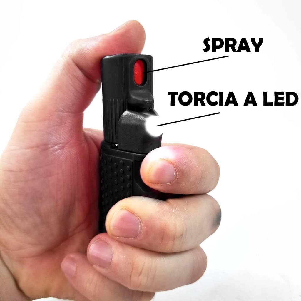 💡 2 IN 1 PRATICO – Torcia LED integrata + spray difensivo, sempre pronto per ogni emergenza