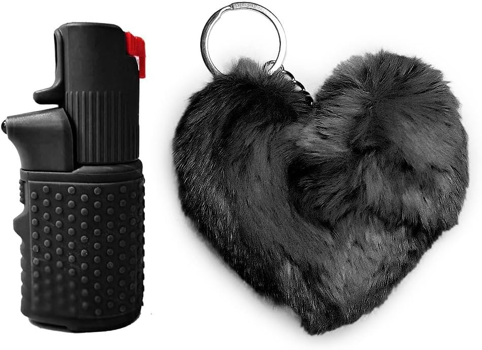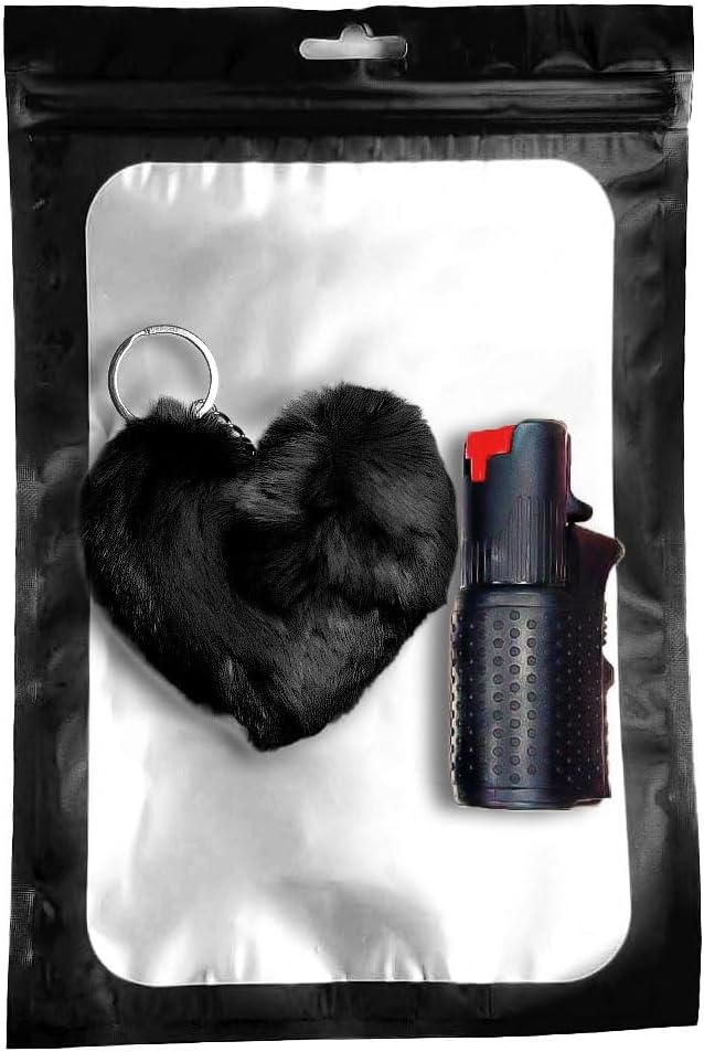 SPRAY COMPATTO E POTENTE DONNA Autodifesa Legale 2-in-1 LED+Spray Nero con PonPon Cuore 15ml 100% legale